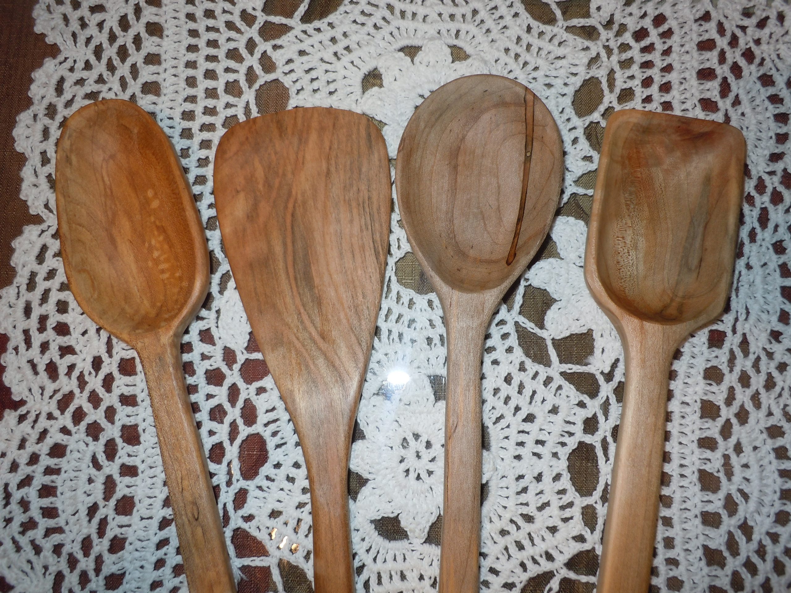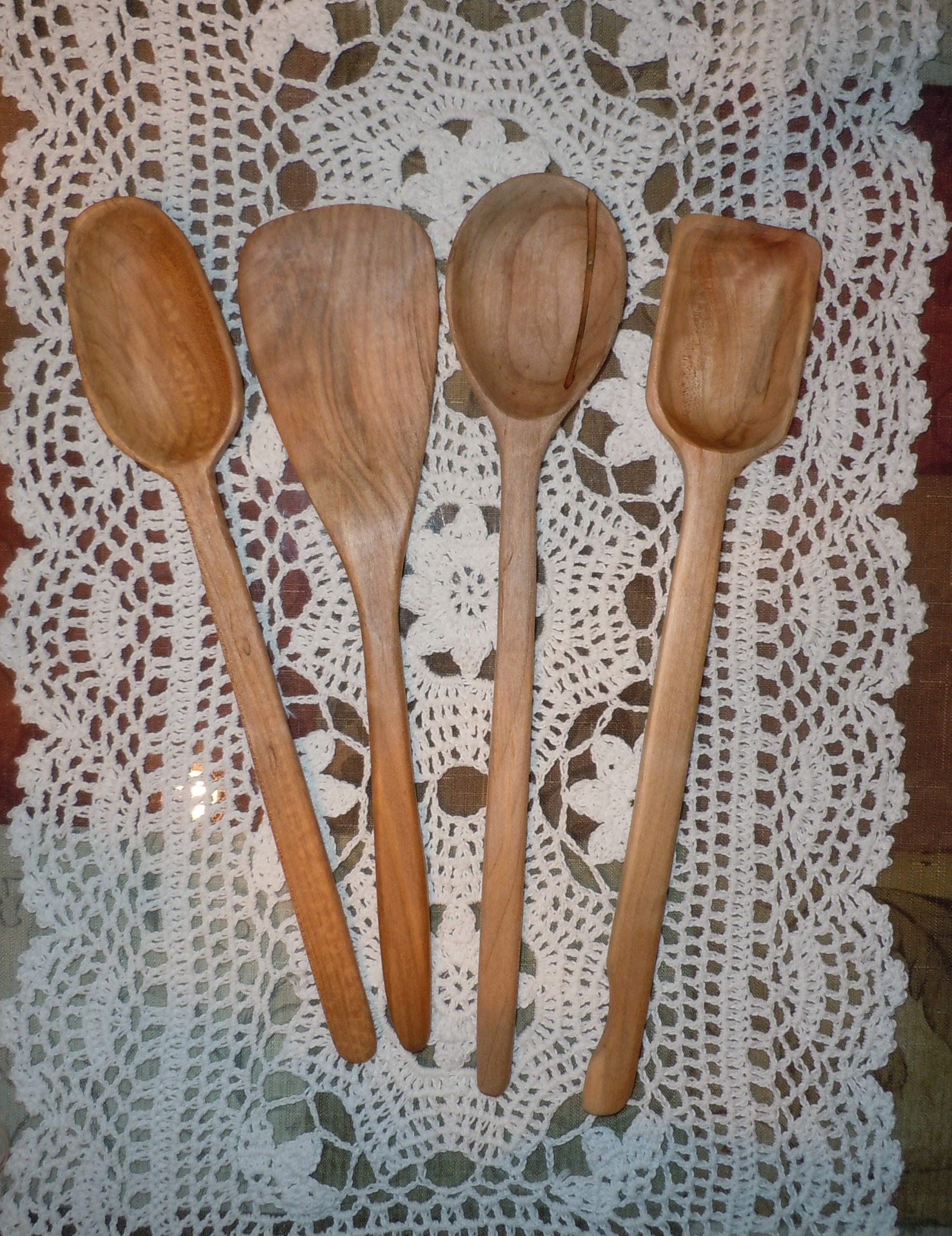 Three different types of spoons and a spatula are included in this convenient four-piece set. This set of hand-made treenware is both visually appealing and incredibly practical for the kitchen. They measure approximately 13 1/4 inches – 14 inches long.