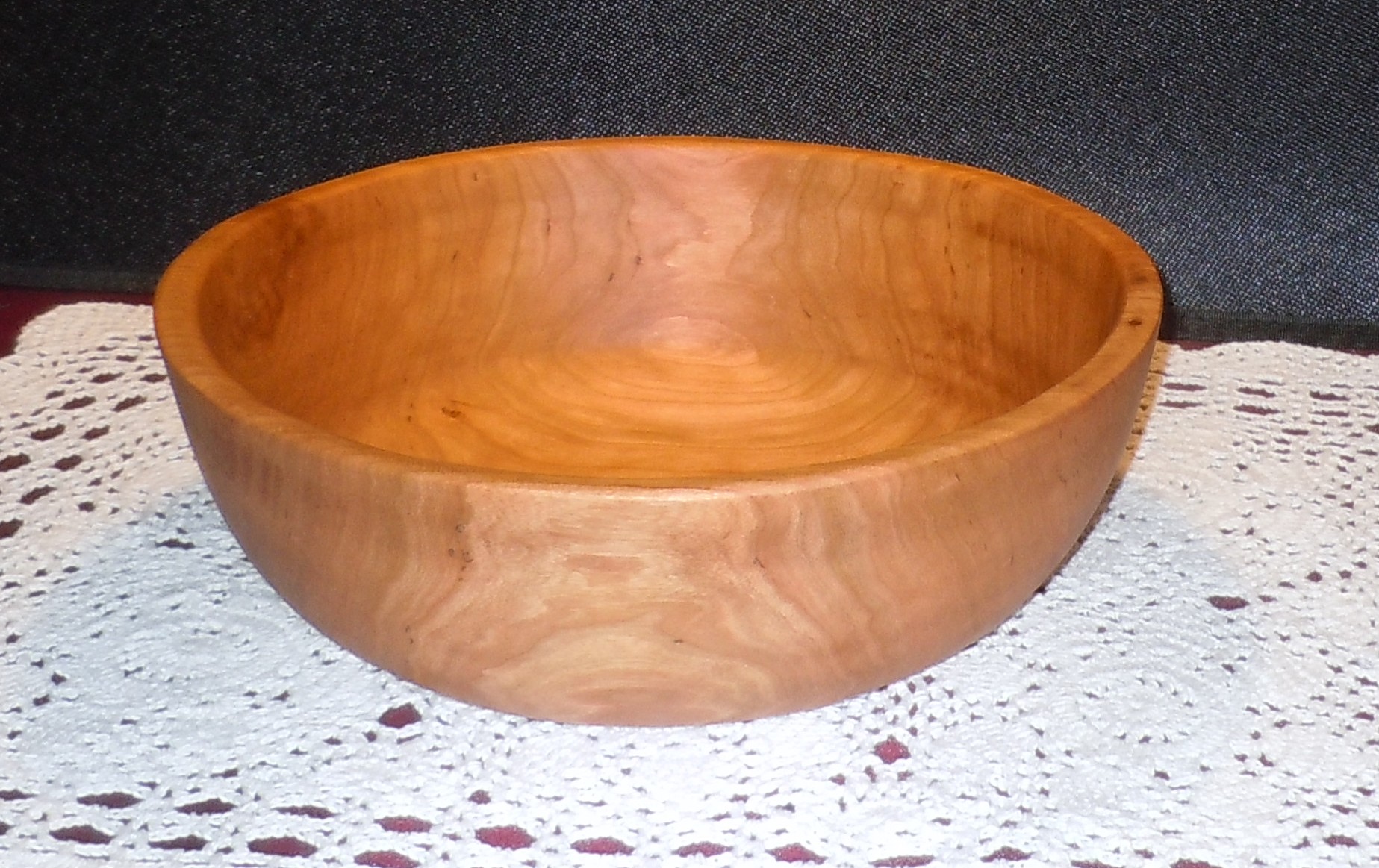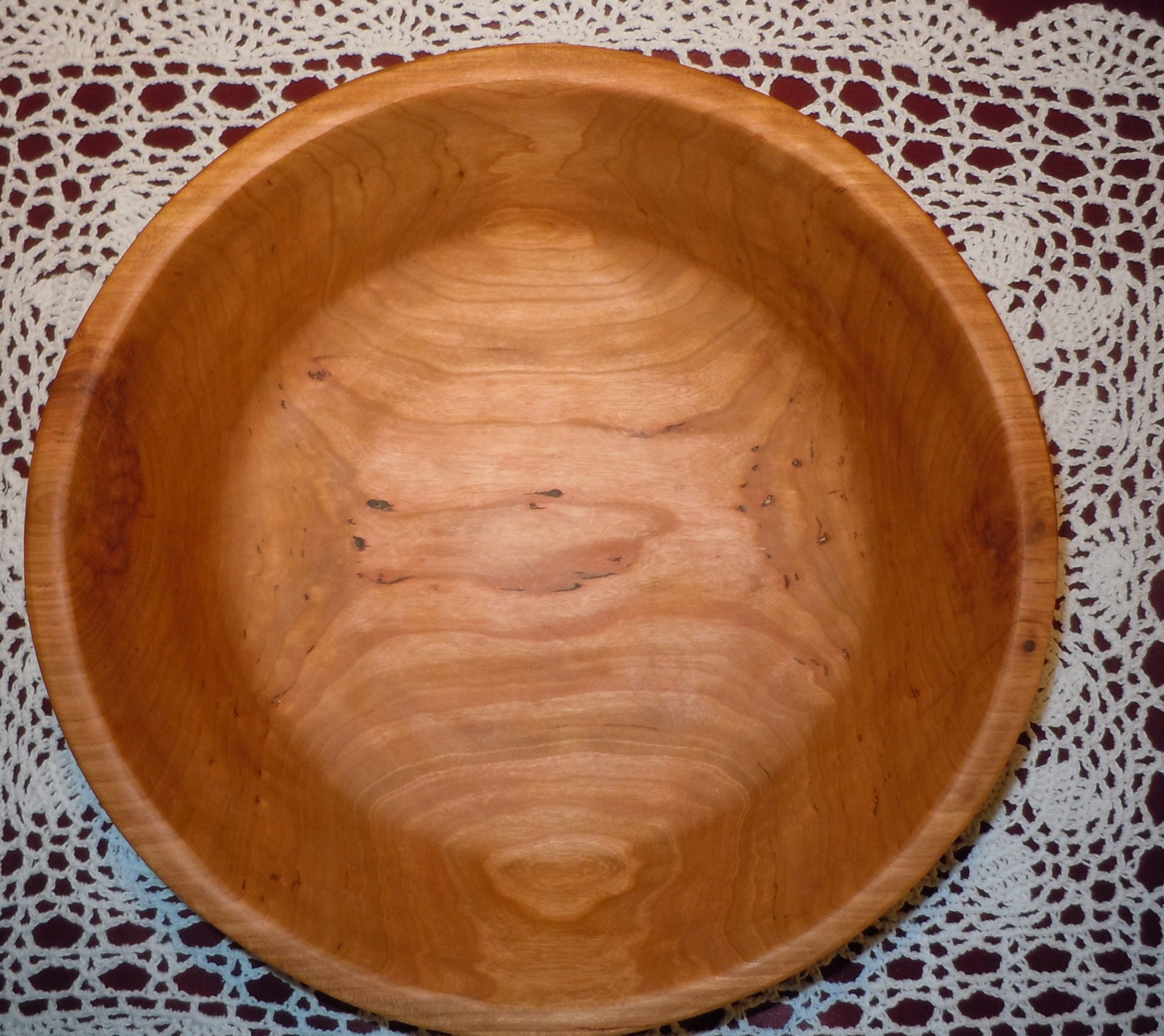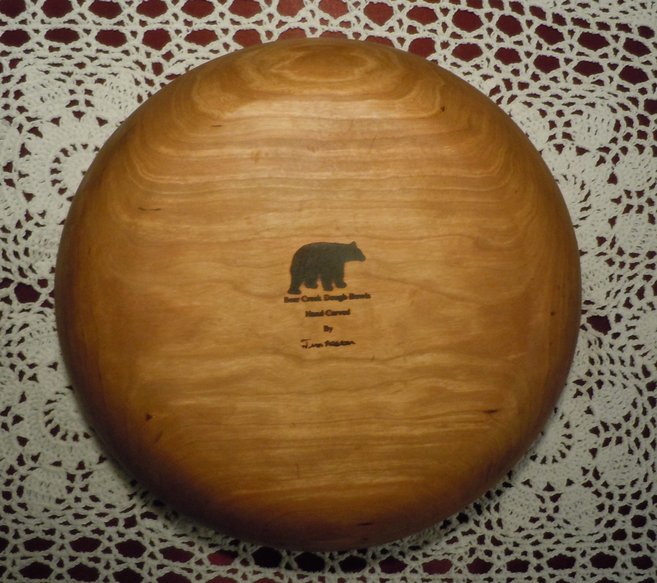 This rounder shaped bowl is the perfect size for biscuit making if you don’t want to make extra-large batches of bread. It measures approximately 11 1/2 – 12″ in diameter x 3 1/2″ H. Sanded inside and out,
